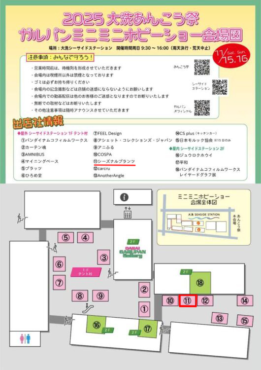 | 開催期間 :2025年11月15日(土)~11月16日(日) 開催時間 :【9:30〜16:00】 会場 :大洗シーサイドステーション 公式告知ページ:こちらから ■ガルパンオンラインミニミニホビーショー2025秋 通販サイト 11/07(金)~11/24(月・祝):こちらから |