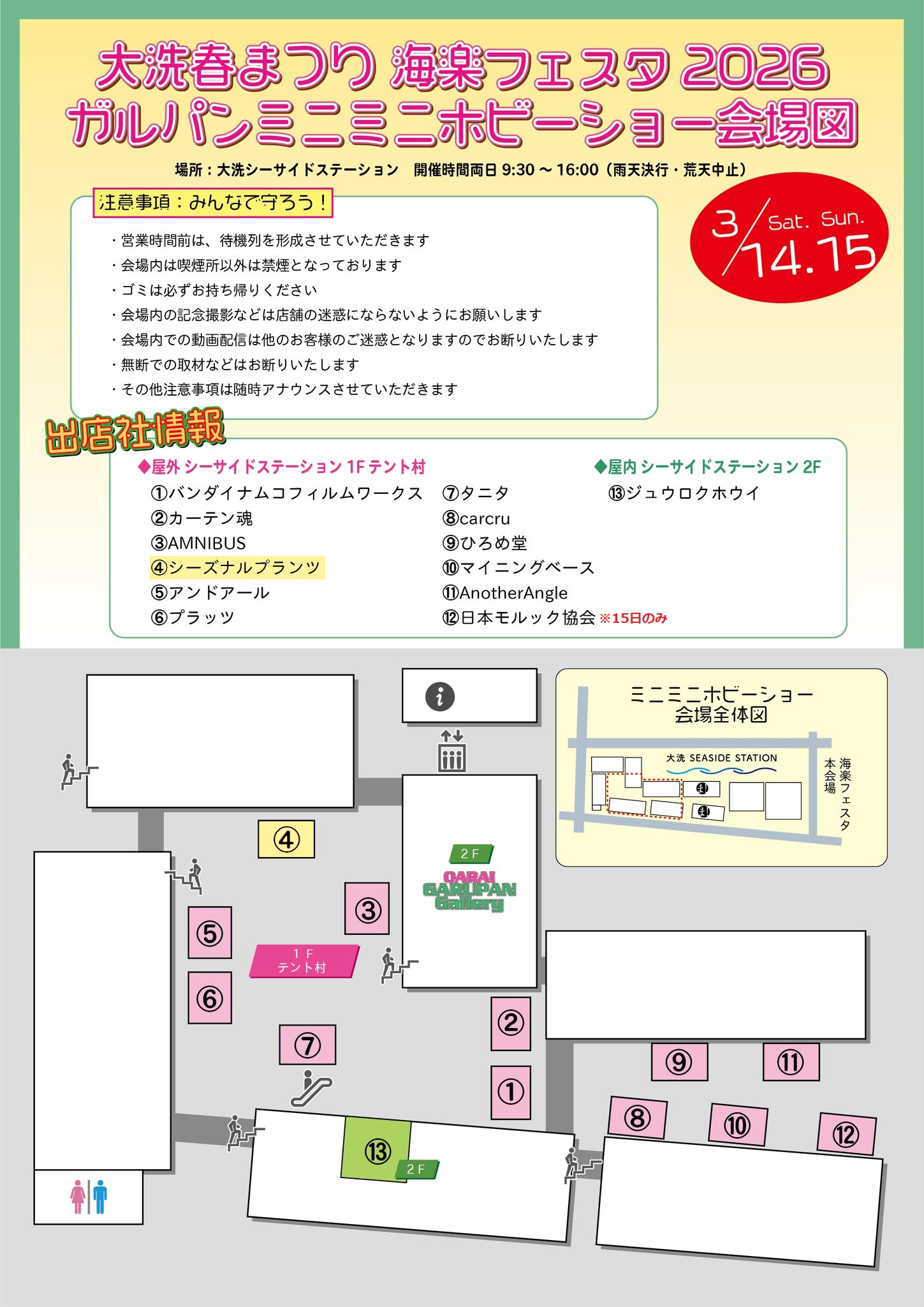 | 開催期間 :2026年3月14日(土)~3月15日(日) 開催時間 :【9:30〜16:00】 会場 :大洗シーサイドステーション 公式告知ページ:こちらから ■ガルパンオンラインミニミニホビーショー2026春 通販サイト 3/6(金)12:00~3/22(日):こちらから |